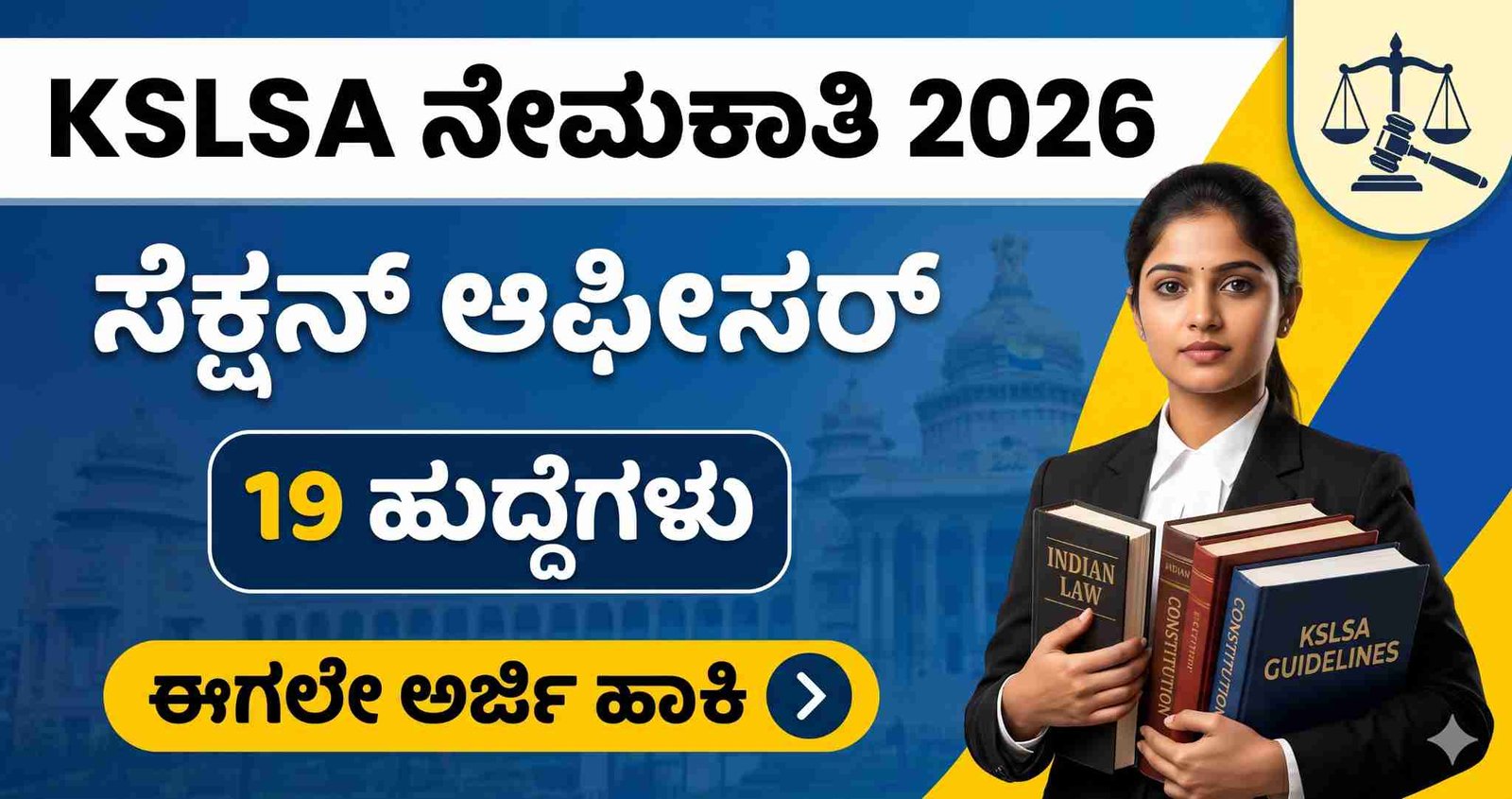 KSLSA Section Officer Recruitment 2026 – ರಾಜ್ಯ ಕಾನೂನು ಸೇವಾ ಪ್ರಾಧಿಕಾರ ನೇಮಕಾತಿ 2026 – ಒಟ್ಟು 19 ಹುದ್ದೆಗಳು
